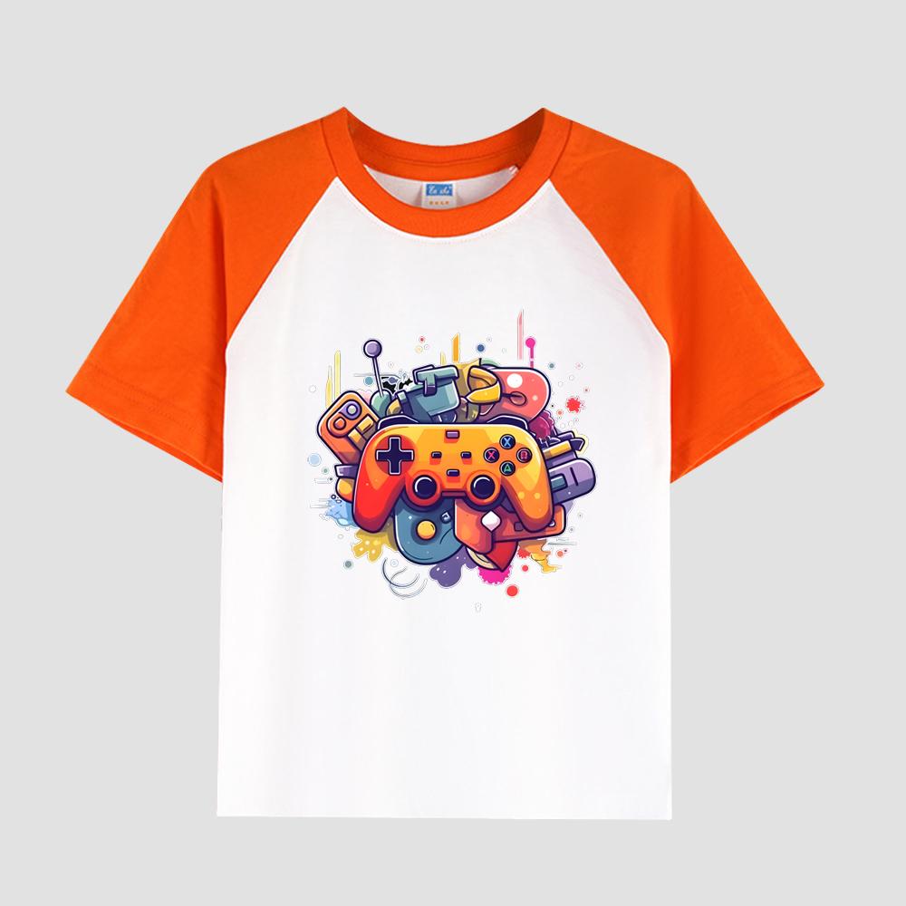 Детская футболка с принтом и заниженной линией плеч, хлопковая ткань, повседневный модный топ с коротким рукавом для мальчиков на лето