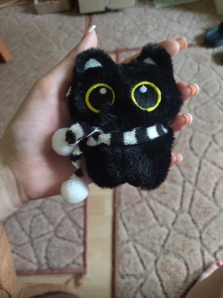 Хороший и милый но шарфик надо пришить, а то потерялся. котёнок тоже позже потерялся т.к. фурнитура слабая и колечко разогнулось.