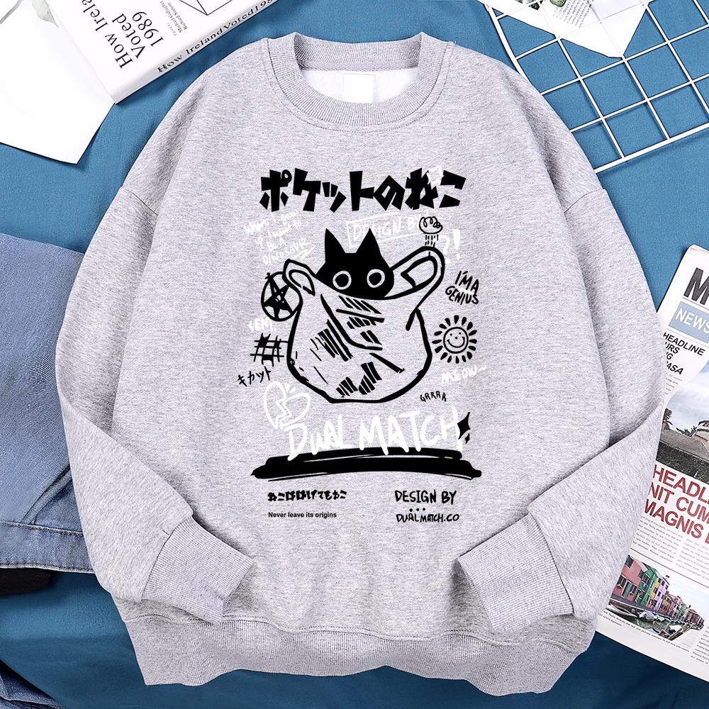 Японский забавный и милый Harajuku Cat Мужская толстовка Винтажная флисовая толстовка Осенняя флисовая одежда Пуловер с круглым вырезом Новая толстовка для женщин унисекс