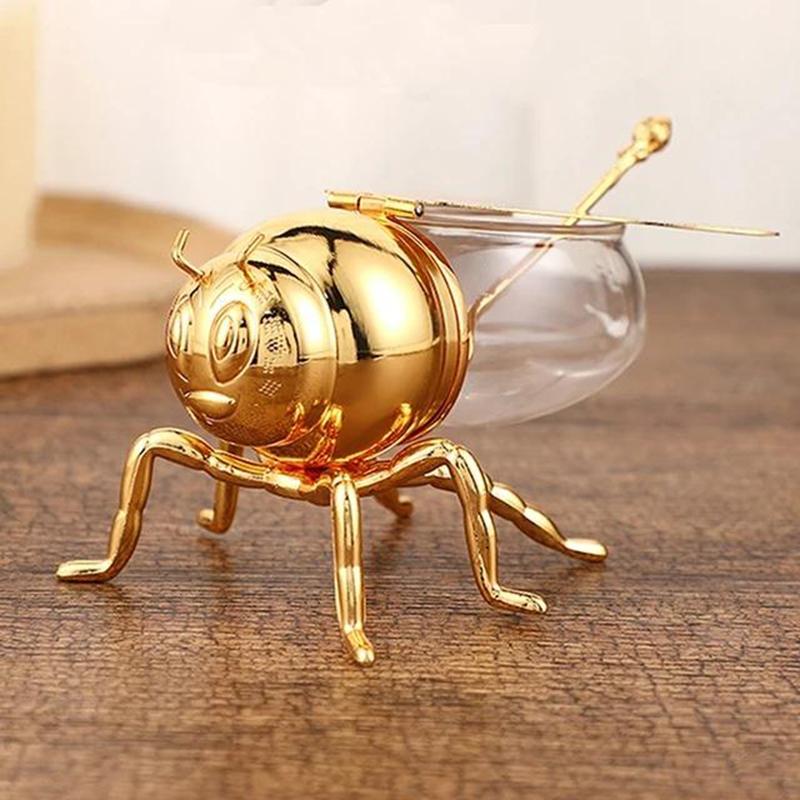 Роскошный горшочек для пчелиного меда с ложкой, банка для меда, чаша для хранения меда, декоративная банка для пчел, прозрачная банка для приправ, кухонная коробка для специй