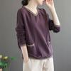 Женский большой размер с длинным рукавом и V-образным вырезом, повседневный, с длинным рукавом, свободный, в стиле ретро, с длинным рукавом в этническом стиле