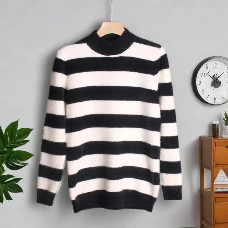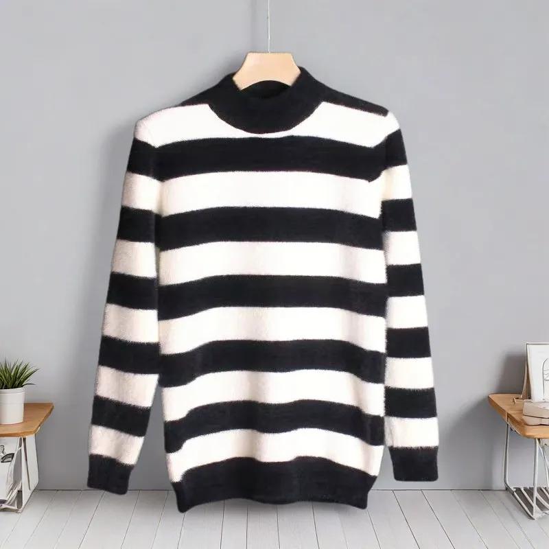 Женский свитер из искусственной норки с круглым вырезом в полоску, утолщенный, повседневный, плотный, теплый, индивидуальный