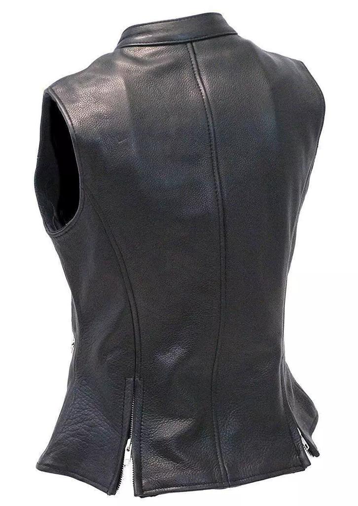 Классический вестерн пальто черный жилет из овчины кожаный женский жилет на пуговицах куртка
