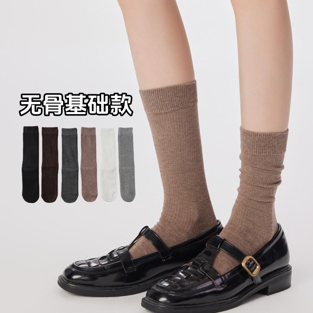 Носки женские из гребенного хлопка без косточек, универсальные, земляного цвета, базовая модель, прямая модель для поездок на работу, женские средние носки-трубы