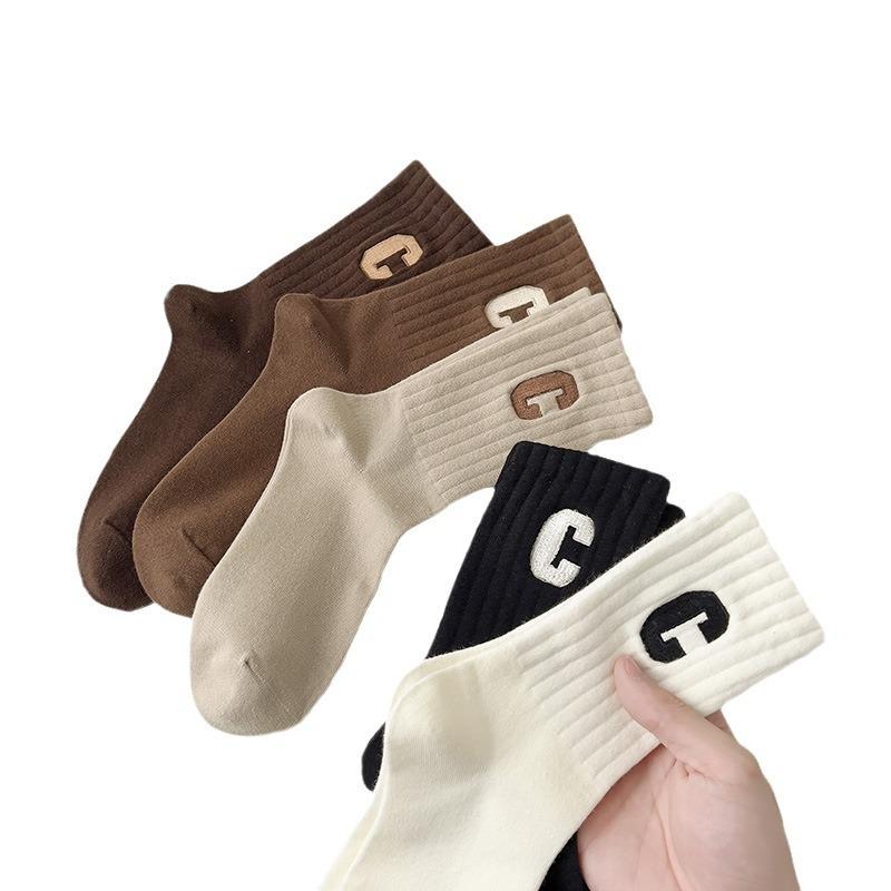 5 пар полосатых носков с медведями, женские средние носки-трубы в стиле ретро, кофейного цвета, длинные спортивные чулки, женские средние носки-трубы