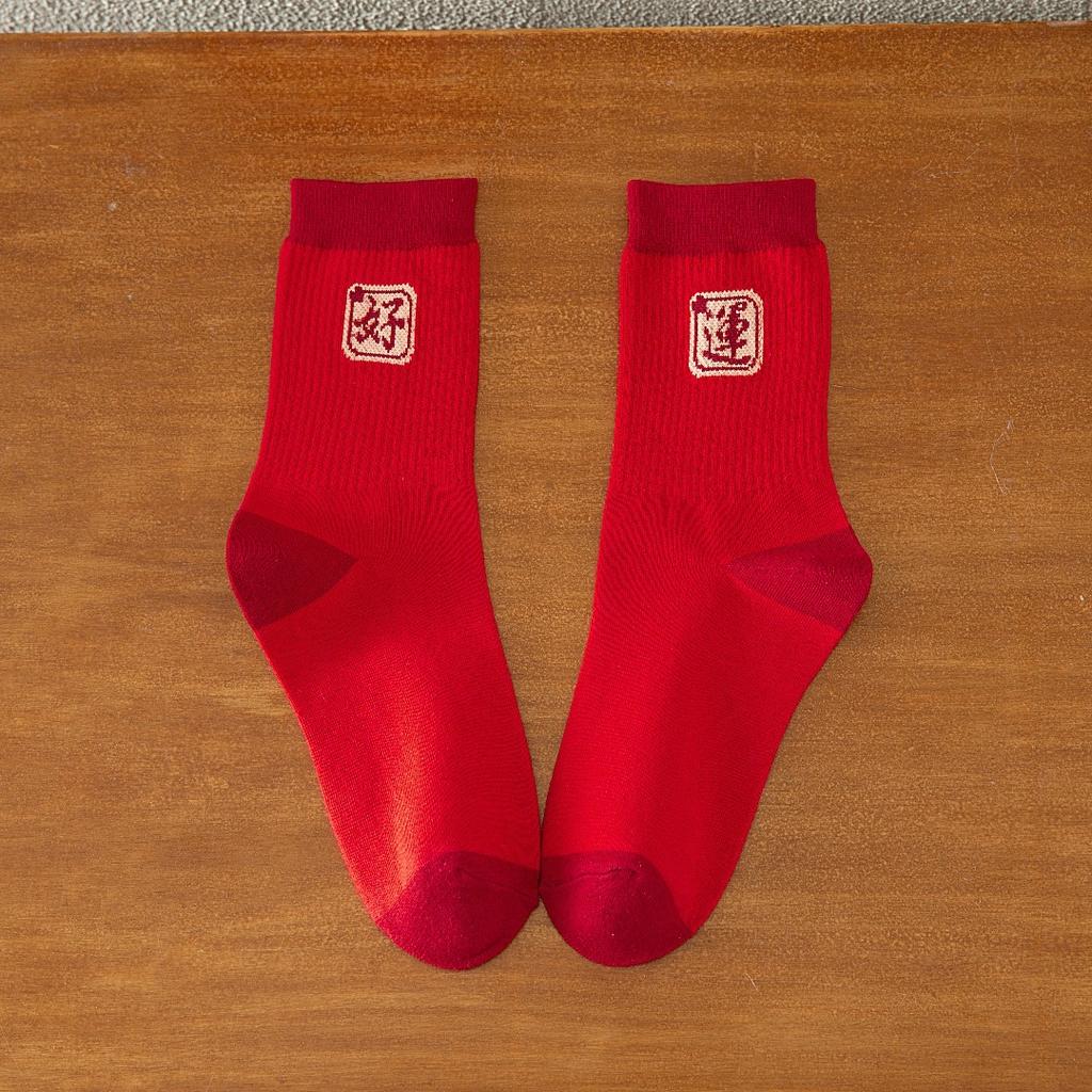 Носки на день рождения, Новый год, мужчины и женщины в безопасности, счастливы и богаты, носки Blessing Hongyun, мужские и женские носки среднего размера