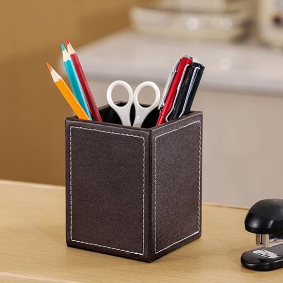 Упорядочить по стилю: В эту подставку для ручек из искусственной кожи легко помещаются ручки, карандаши, ножницы и многое другое, что улучшает эстетику стола и позволяет навести порядок на рабочем месте.