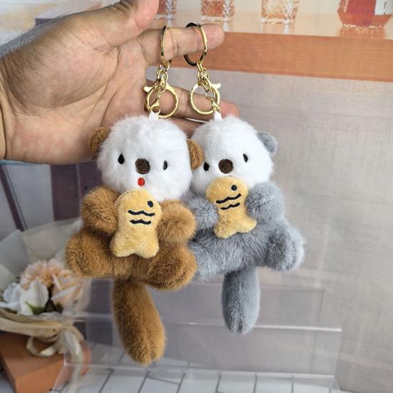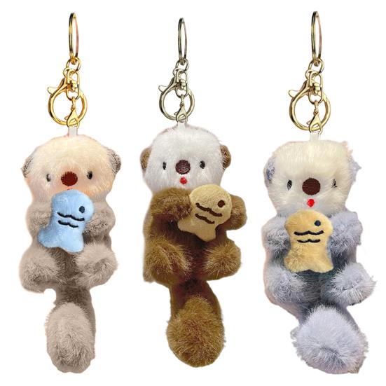 Брелок для ключей Otter с рыбой, плюшевой сумкой, подвеской, милым животным Otter