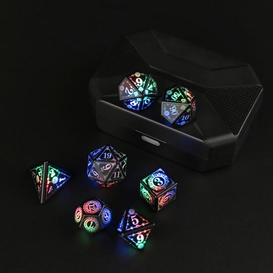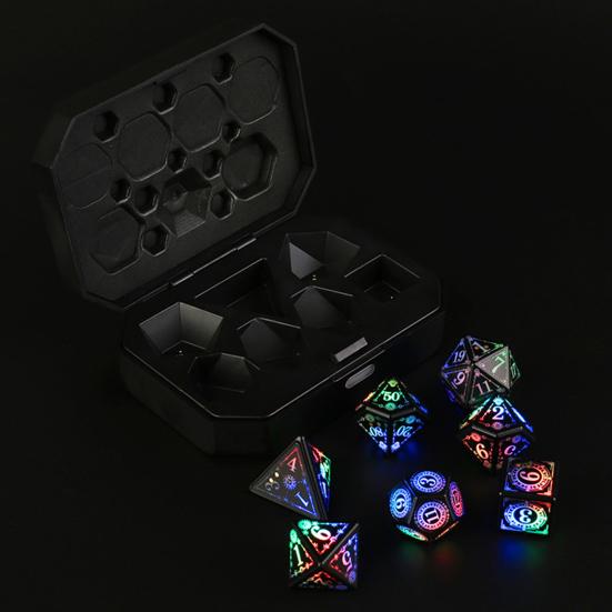 Компактные и портативные, они идеально подходят для игрового процесса на ходу.. Функция свечения добавляет элемент веселья, каждая вспышка длится 20 секунд.. Этот набор из семи игральных костей — все, что вам нужно для захватывающего игрового вечера..