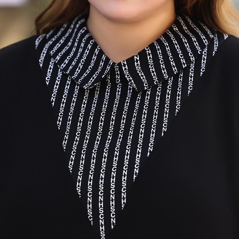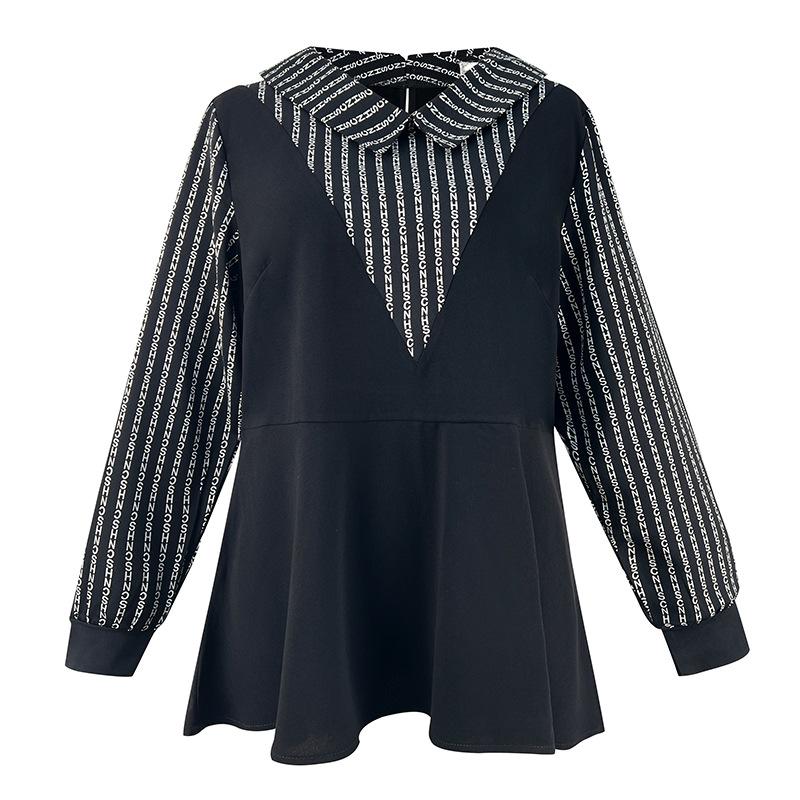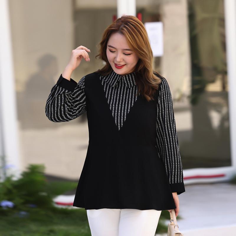 Плюс Размер Женский Новый Осенний Тонкий Лоскутный Длинный Рукав Шифоновый Топ