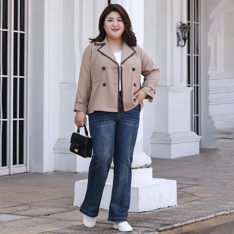 Большие размеры женские осенние новые узкие высококачественные винтажные расклешенные джинсы