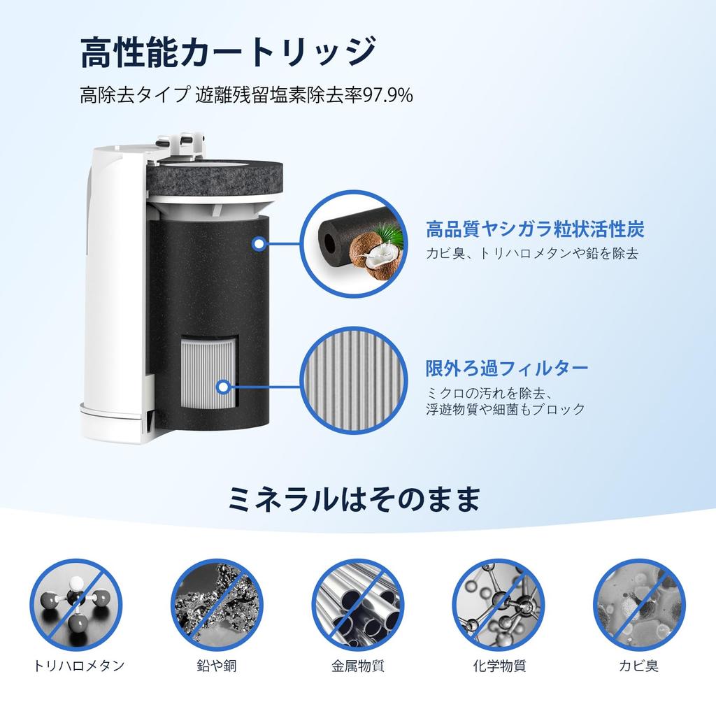 Способность очистки воды: удаляет 12 веществ. Свободный остаточный хлор, мутность, тригалометан, растворимый свинец, 2-МИБ (запах плесени), CAT (пестицид), тетрахлорэтилен, трихлорэтилен, тригалогенметан, дибромхлорметан, дибромхлорметан, хлороформ.