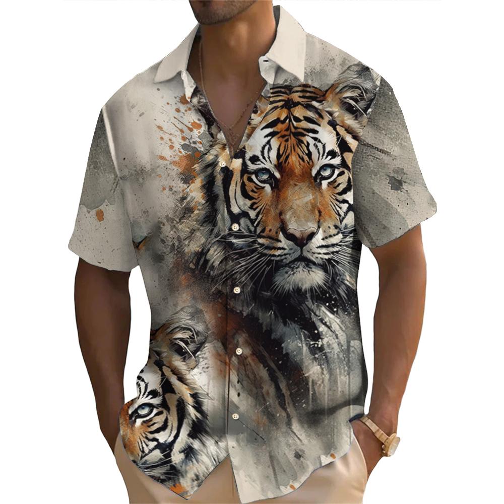 Летняя модная мужская рубашка с коротким рукавом, винтажный анималистический принт с тигром, повседневная, повседневная, свободные мужские рубашки, свободные топы