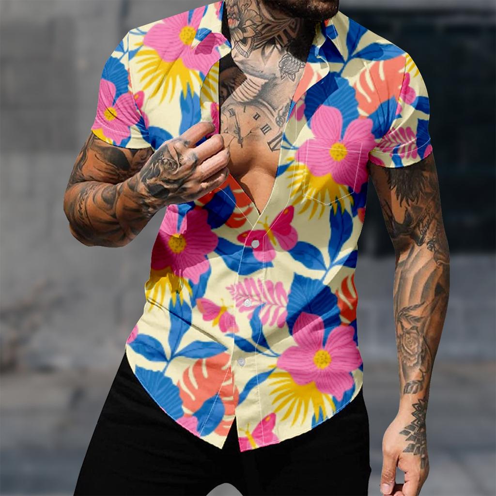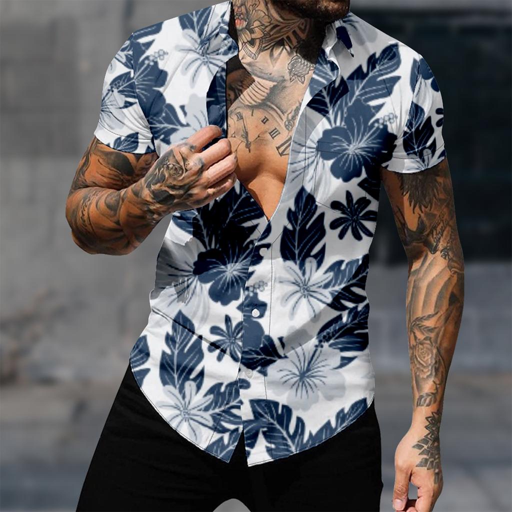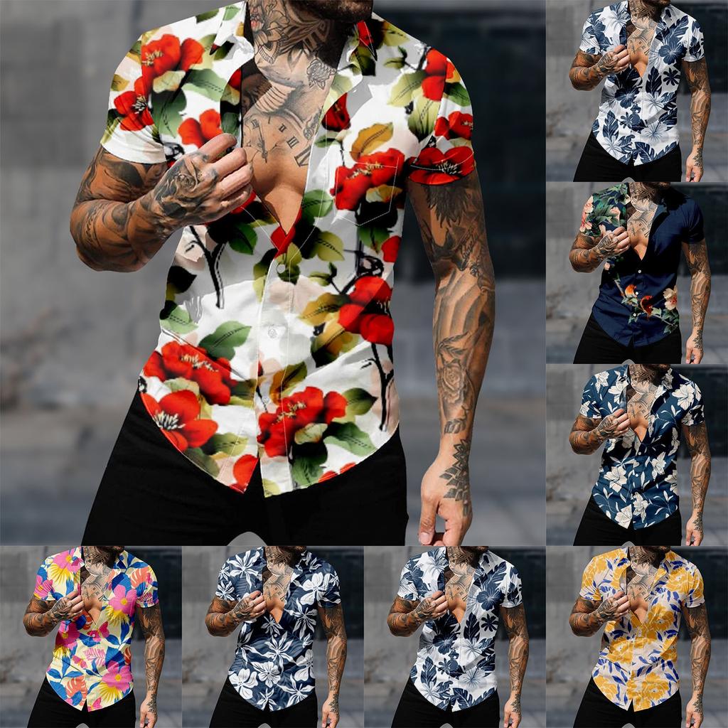 Мужские гавайские рубашки с короткими рукавами и пуговицами с принтом. Мужские повседневные модные рубашки с короткими рукавами.