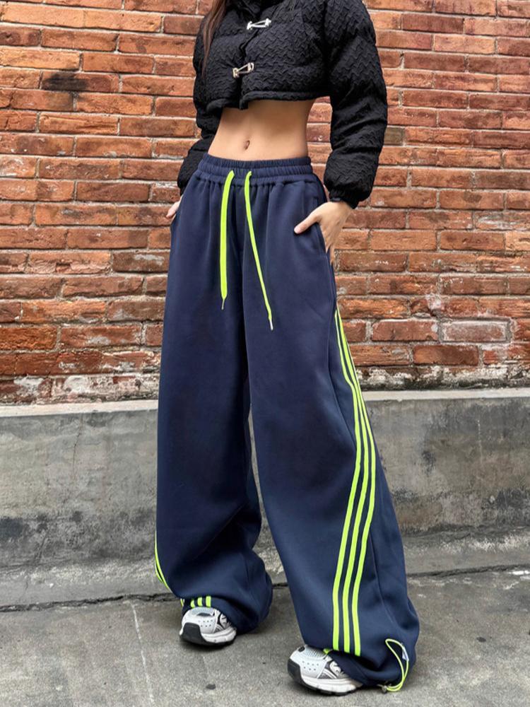 Уличные спортивные штаны в полоску с тремя полосками, американские широкие брюки, свободные спортивные штаны из бархата, повседневные спортивные штаны Joker