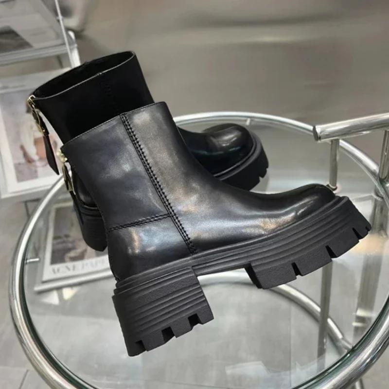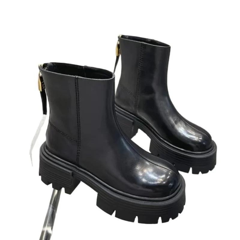 2024 Обувь Женские Ботильоны Женские Ботинки Платформа Современные Ботинки Женские Шитье Круглый Носок Молния Сзади Квадратный Каблук Туфли Женские
