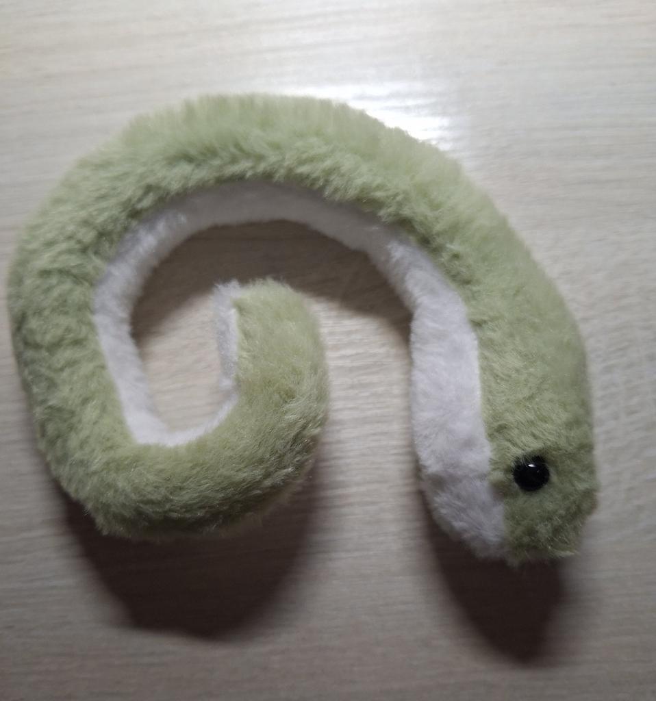Мех очень мягкий и приятный на ощупь. Из минусов укажу то, что клей сильно торчит из глаз, а так же на теле самой змеи. У хвоста есть дырка, которую пытались заклеить.. За свою стоимость нормально