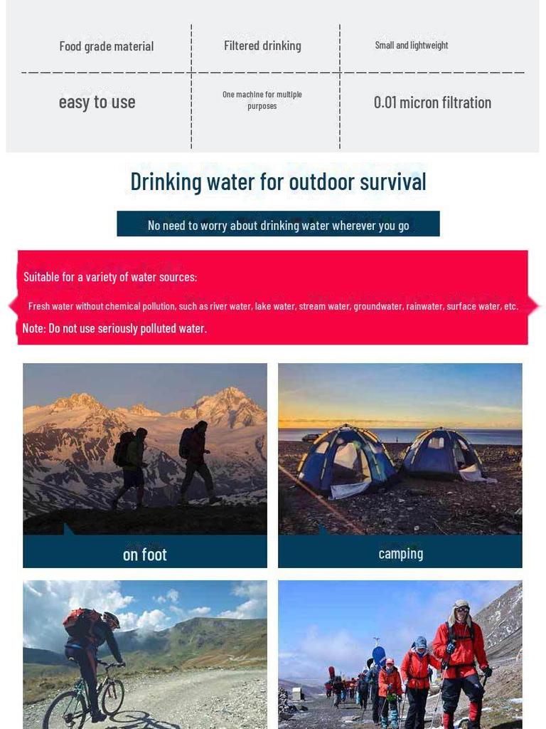 Портативная ультрафильтрующая трубочка для питья на открытом воздухе - очиститель воды для экстренных случаев