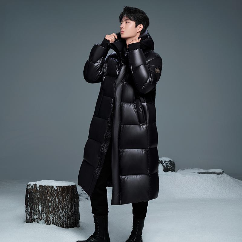 Мужская куртка-пуховик с длинным капюшоном, куртка на гусином пуху, толстое теплое пальто