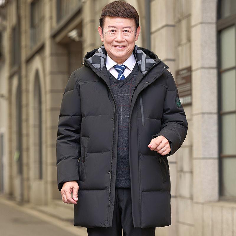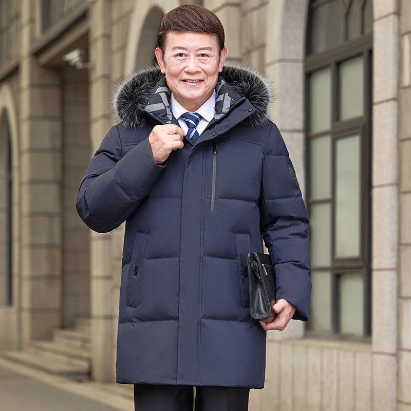 Пуховик для людей среднего и пожилого возраста, средней длины, с капюшоном и большим меховым воротником, простое повседневное водонепроницаемое теплое пальто