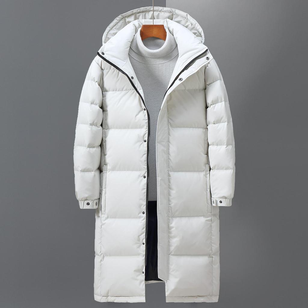 Зимний пуховик в европейском и американском стиле, мужская длинная куртка выше колена, теплая уличная куртка с капюшоном на белом утином пуху для молодых мужчин