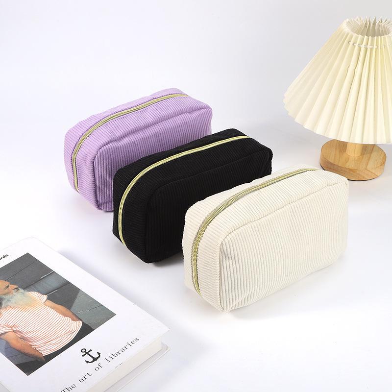 «Модная вельветовая сумка для хранения 2023 года — большая вместимость, однотонный цвет, универсальный органайзер для косметики и канцелярских принадлежностей»