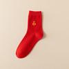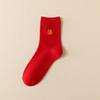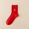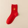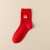Год Змеи День рождения Новый год Красные носки из чесаного хлопка однотонные плоские носки с вышивкой в виде золотистой змеи Fufa для мужчин и женщин среднего размера