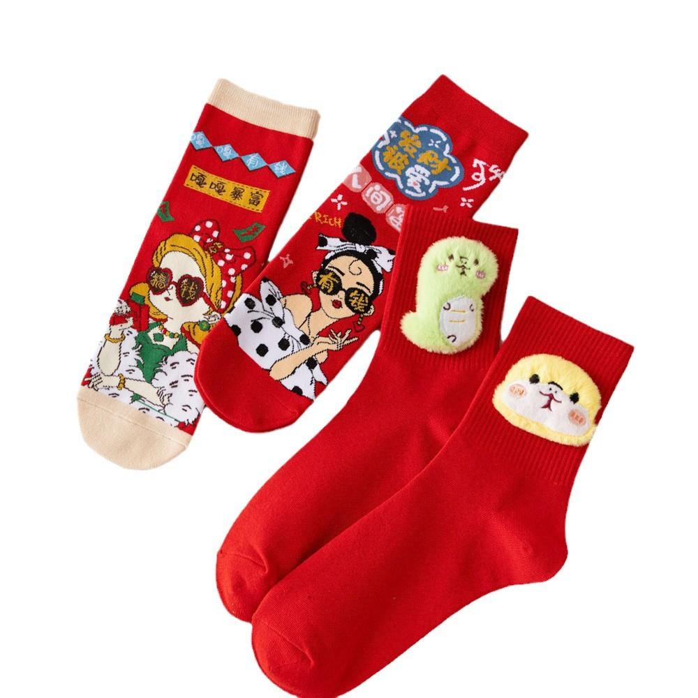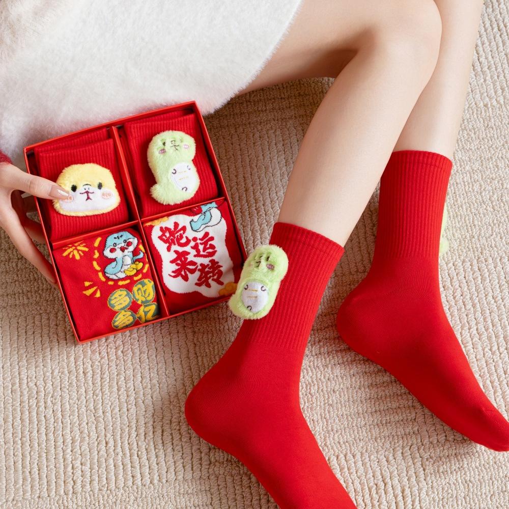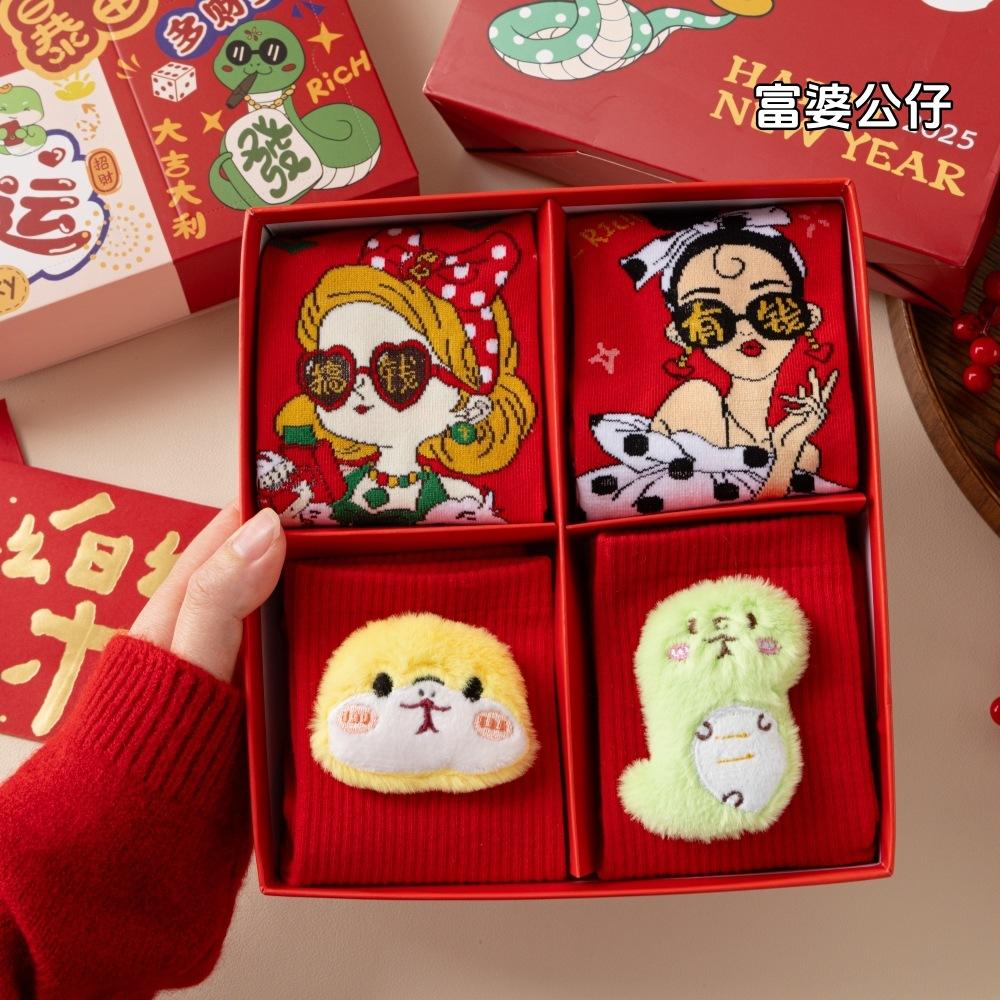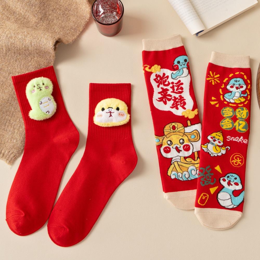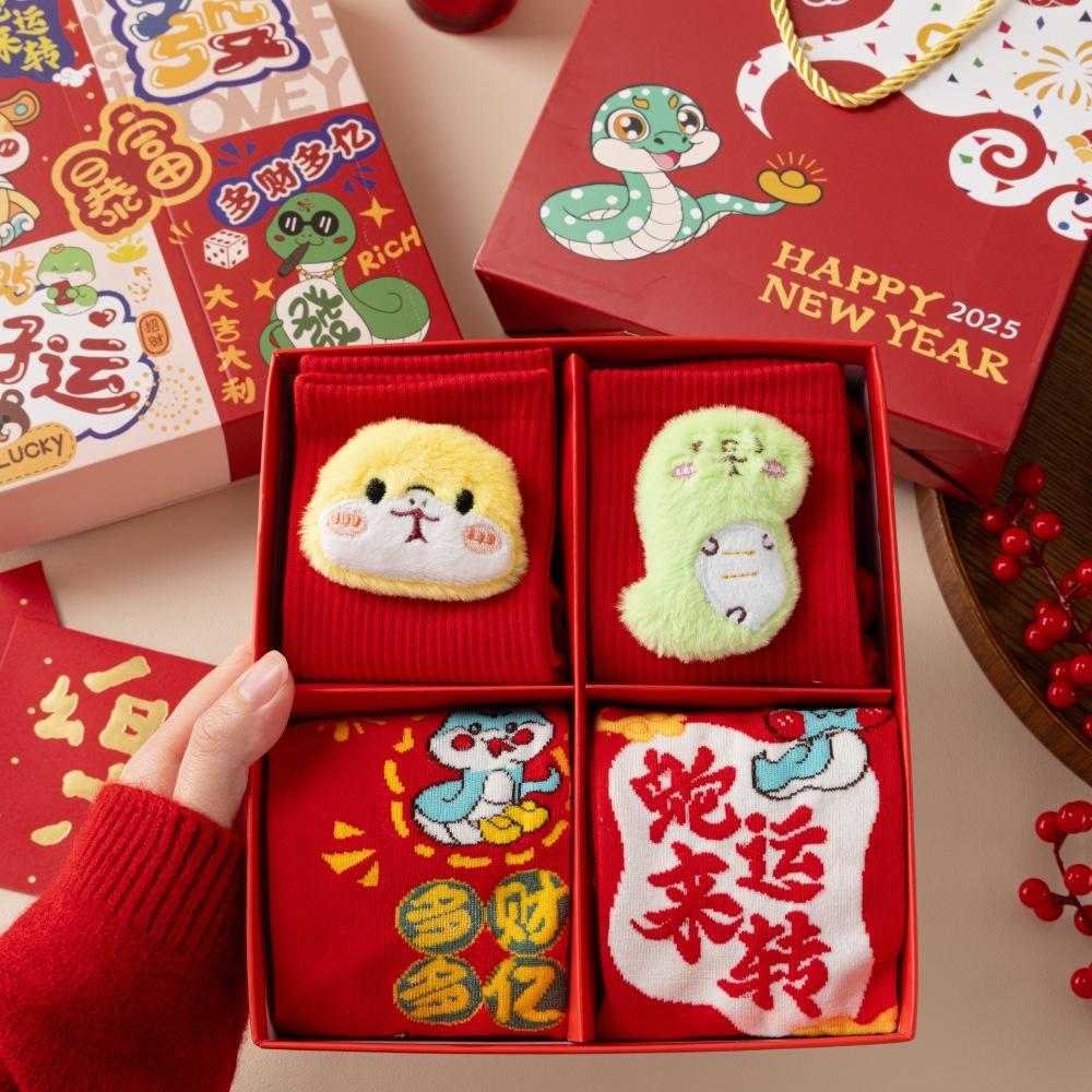 Год змеи кукла коробка с подарком на Новый год носки из чесаного хлопка милые змеи сокровище змея бегает большие красные носки средние носки