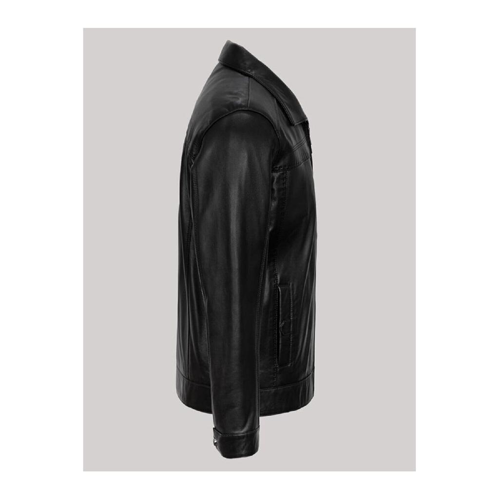 Черное мужское кожаное пальто из натуральной кожи с плоскими карманами