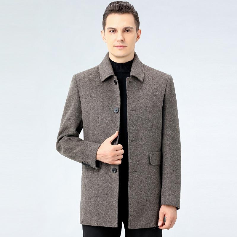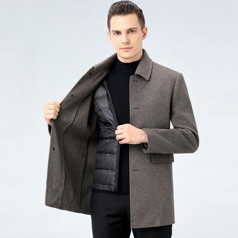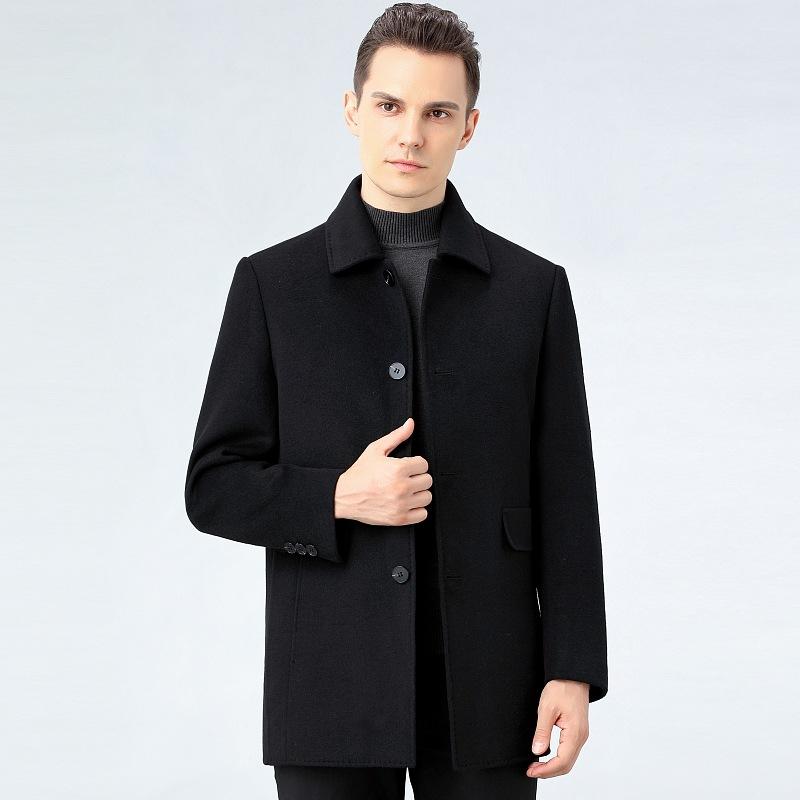 Зимнее двустороннее шерстяное кашемировое пальто средней длины для мужчин, шерстяное деловое повседневное пальто