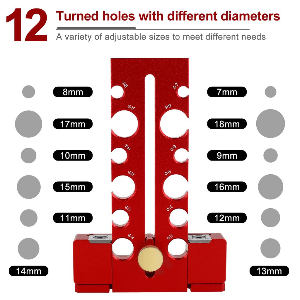 12 отверстий, приспособление для изготовления дюбелей, регулируемая электрическая дрель 7 мм-18 мм, поворотный круглый стержень, вспомогательный инструмент с твердосплавным лезвием