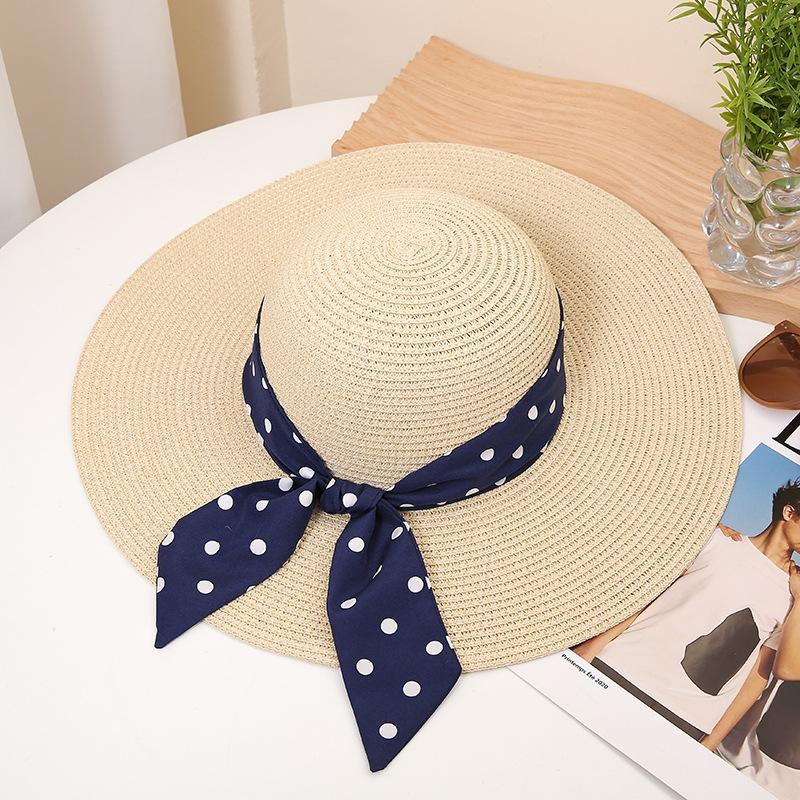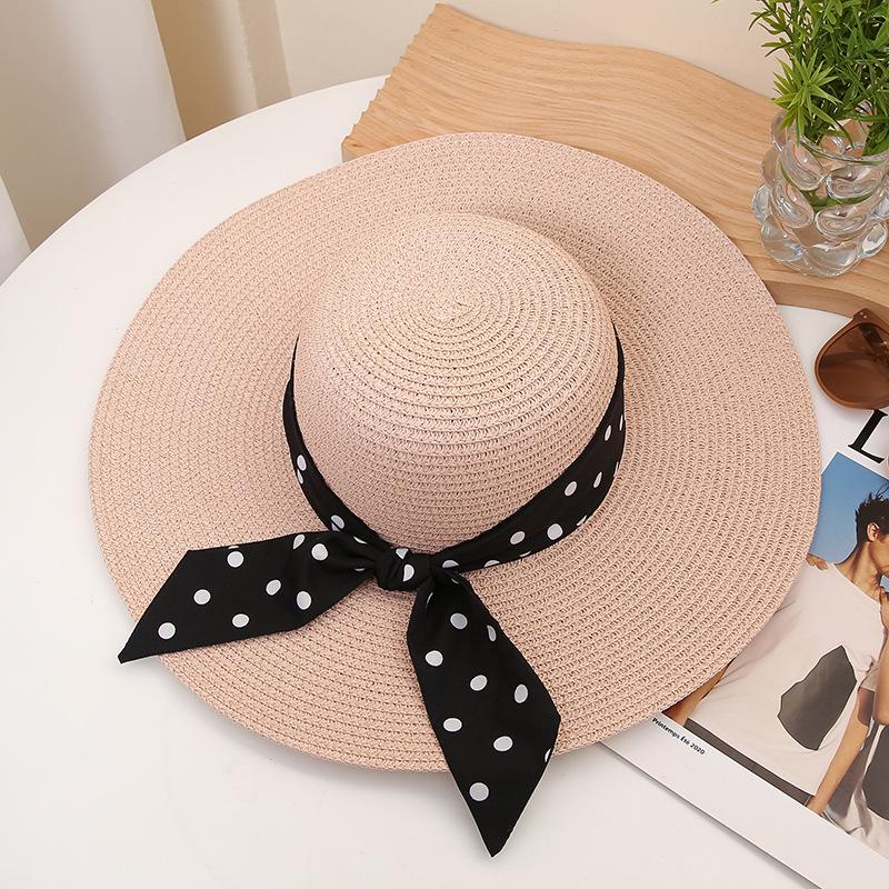 Шляпа от солнца с бантом в горошек, однотонная широкополая шляпа, летняя шляпа с защитой от ультрафиолета для женщин