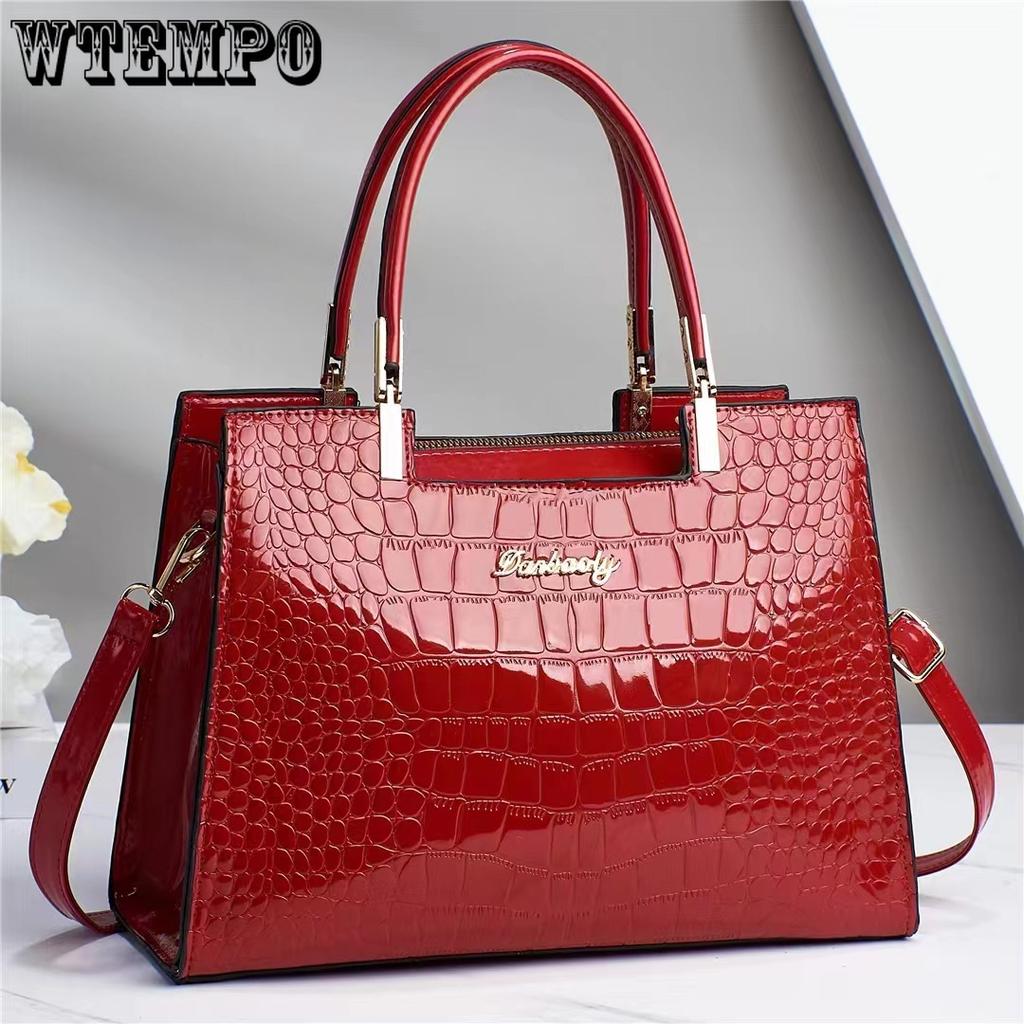 WTEMPO Однотонные простые сумки для мам с крокодиловым узором, универсальные женские сумки на молнии, сумки через плечо большой вместимости