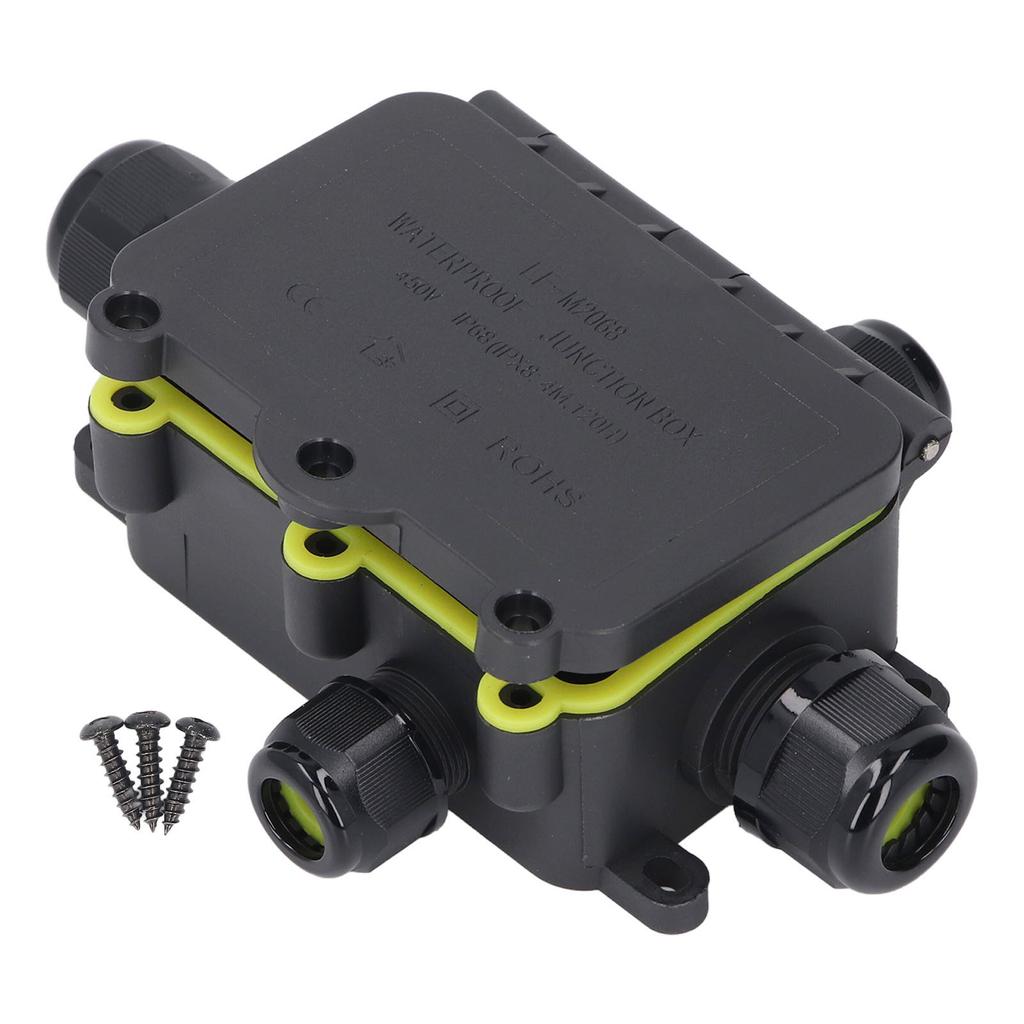 1. [Премиум-конструкция] Изготовленная из пластикового корпуса PA66, силиконового водонепроницаемого уплотнительного кольца и медных винтовых отверстий, эта распределительная коробка является антиоксидантной, антикоррозионной, термостойкой, водонепроницаемой, не трескается и не выцветает на солнце.