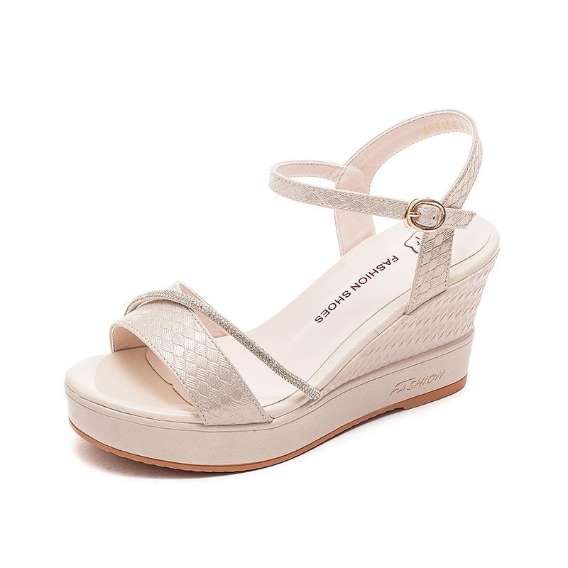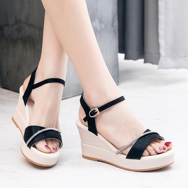 Летние удобные элегантные женские босоножки на танкетке с высоким каблуком и открытым носком, с круглой пряжкой, сандалии-гладиаторы с узким ремешком
