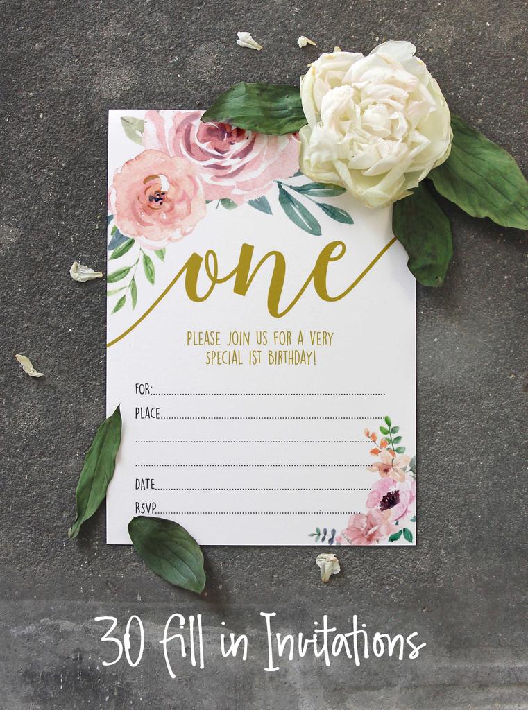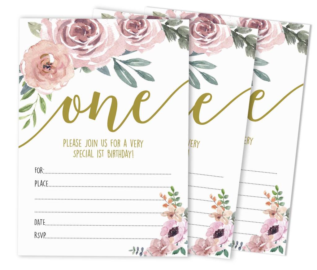 Inkdotpot Приглашения на первый день рождения девочки с цветочным узором, приглашения на вечеринку в стиле Fill-In Stlye с конвертами, упаковка из 30 штук, 5x7 дюймов