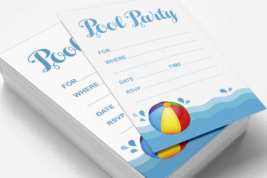 Inkdotpot Упаковка из 30 приглашений на вечеринку у бассейна, приглашения на детский день рождения с конвертами, заполняемый стиль для детской вечеринки у бассейна 5 x 7 дюймов