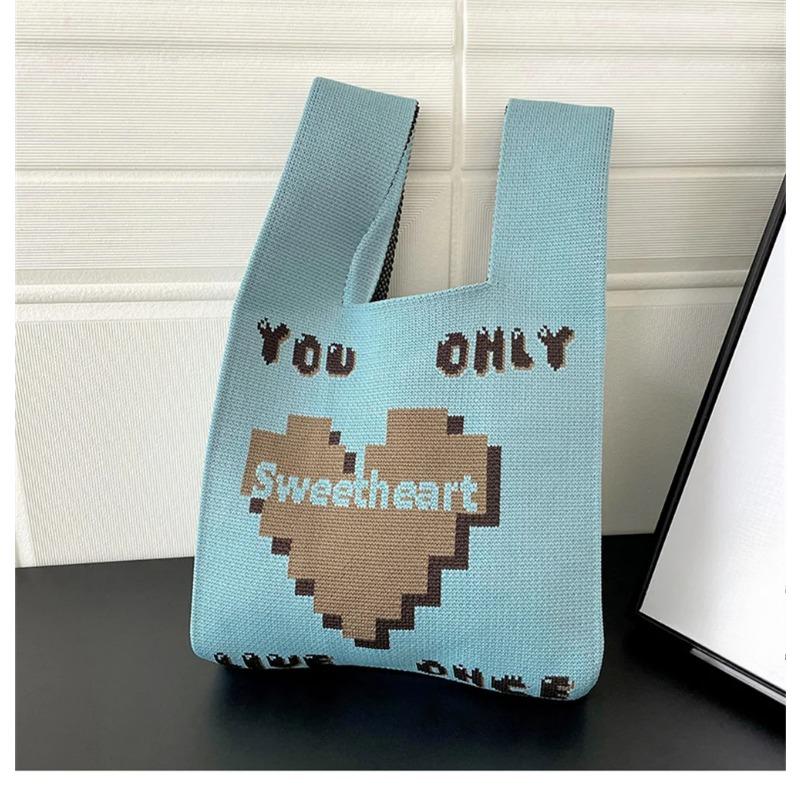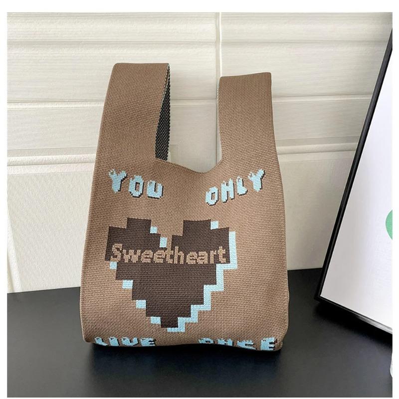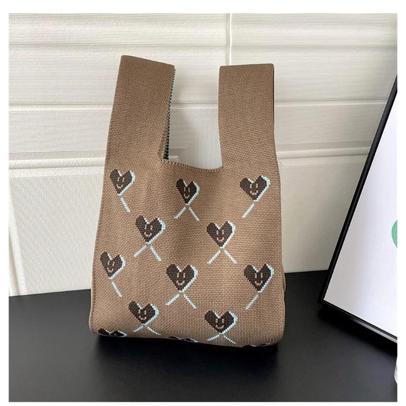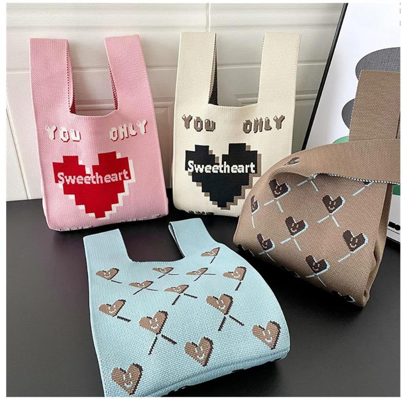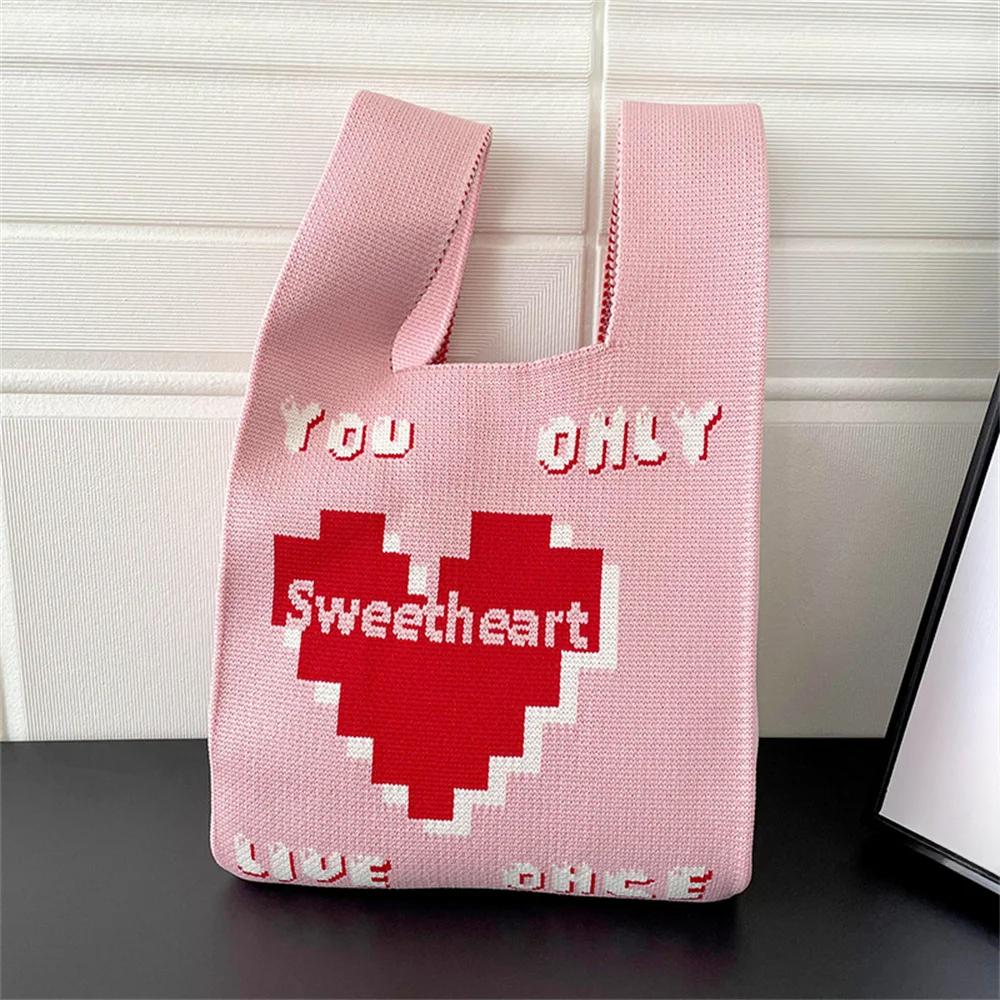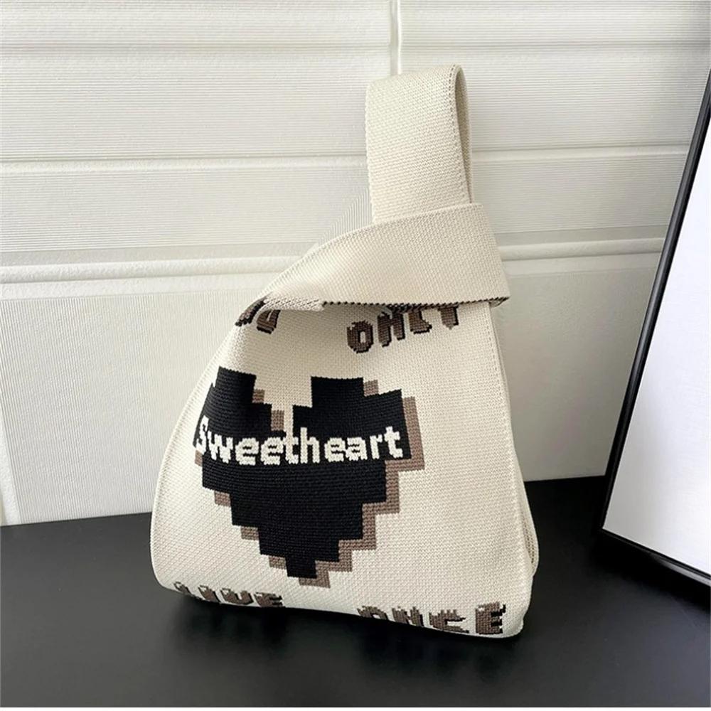 Новая корейская нишевая дизайнерская сумка для девочек с сердечками из плотной гибкой ткани, многоразовые сумки для покупок, сумка для ключей