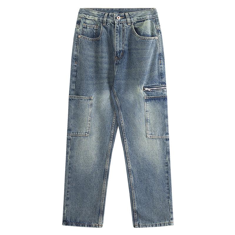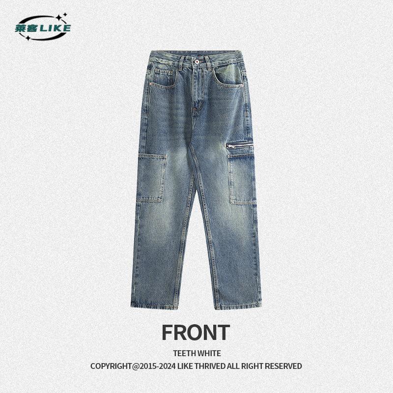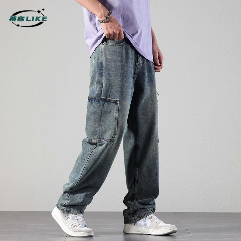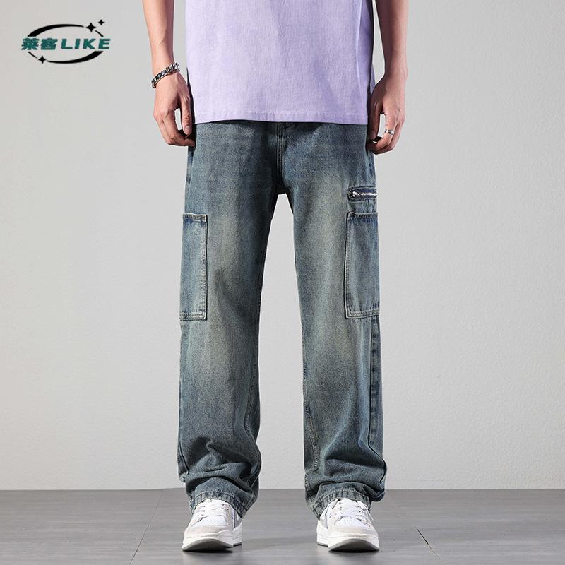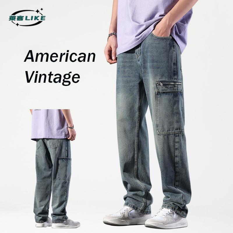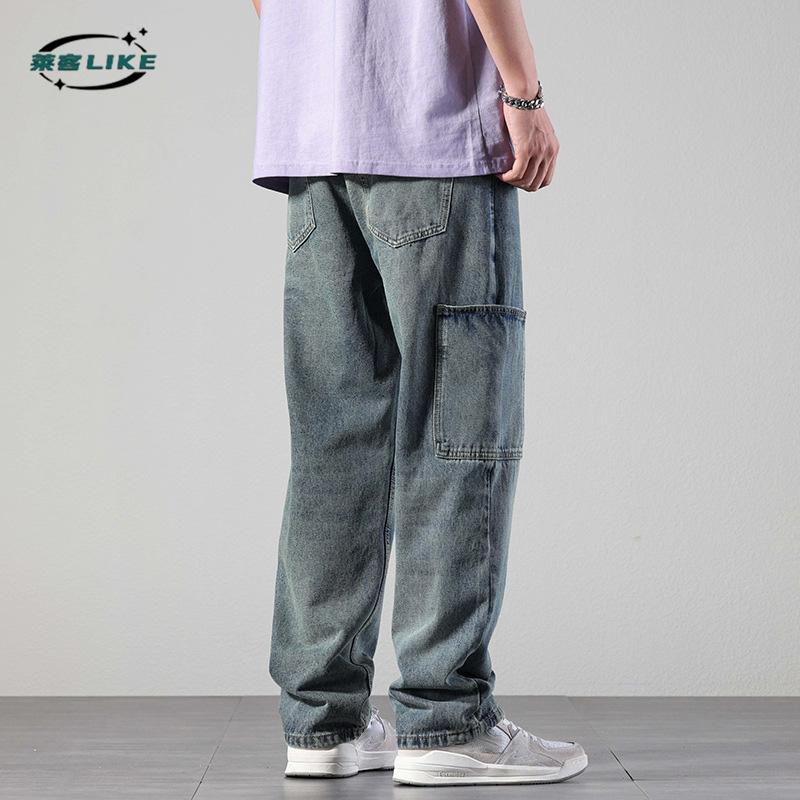 Новые осенние и зимние мужские рабочие брюки American High Street, свободные прямые брюки, универсальные повседневные джинсы Ins Street