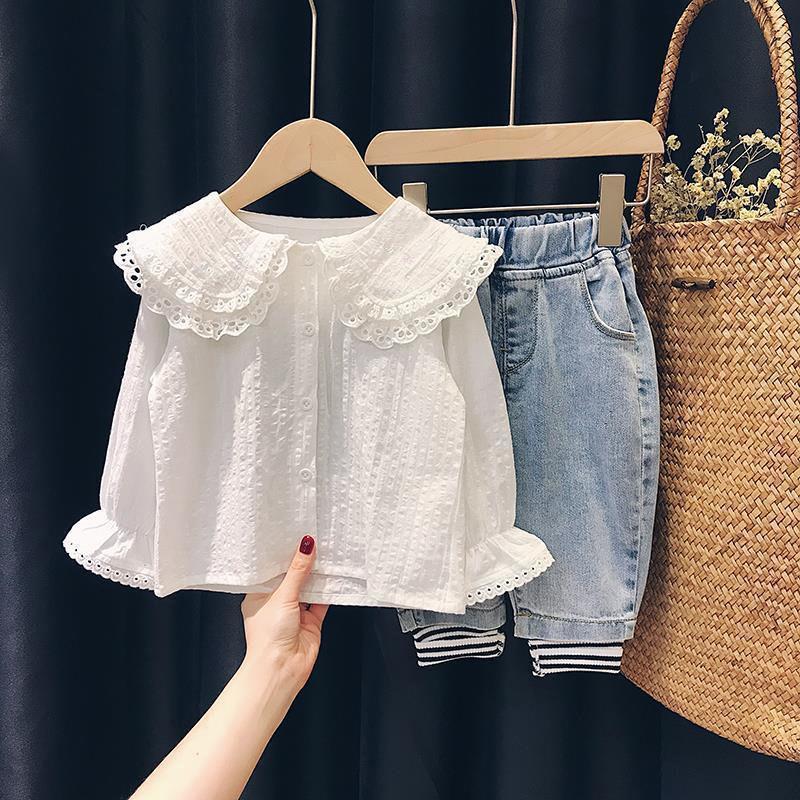 Рубашка для девочки, весенняя и осенняя рубашка для девочки, кардиган для маленькой девочки, корейская рубашка с длинными рукавами, детская одежда