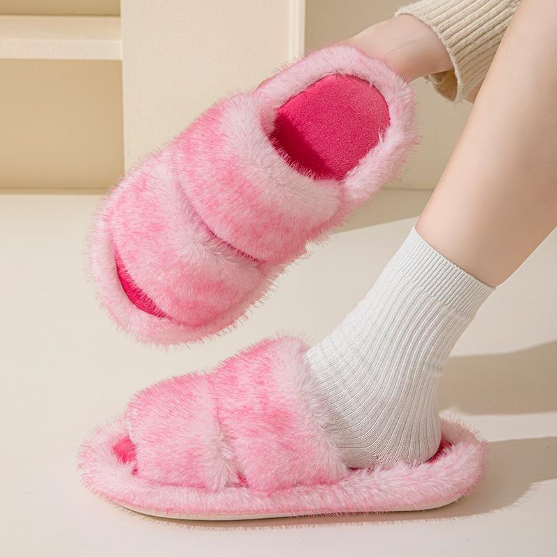 Элегантные мохнатые тапочки Осенние и зимние пушистые тапочки Тапочки Баотоу Домашние тапочки Допамин Хлопковые тапочки Плюшевые тапочки Женская домашняя обувь Тапочки розовые
