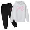 Детский плюшевый длинный рукав, длинные брюки, свободный свитер, бант с принтом, комплект с капюшоном