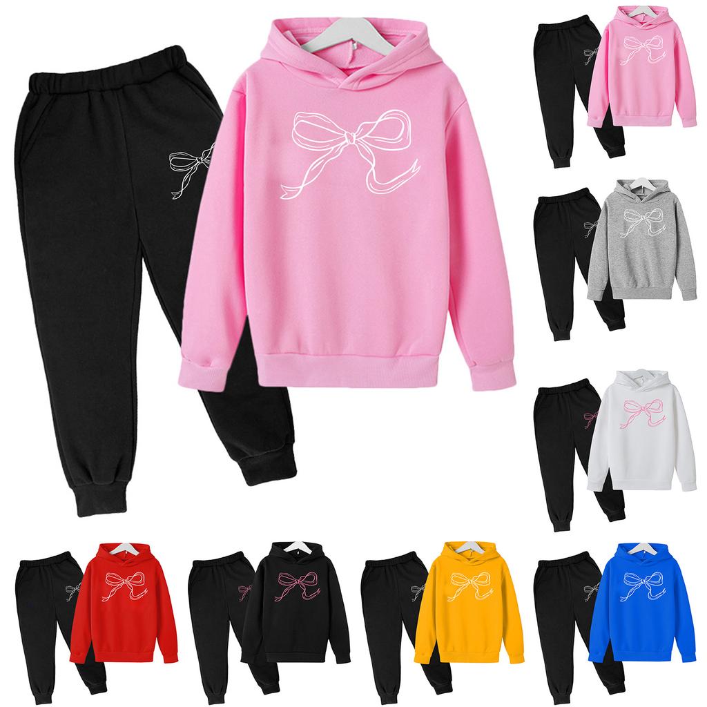 Детский плюшевый длинный рукав, длинные брюки, свободный свитер, бант с принтом, комплект с капюшоном — купить товар онлайн с бесплатной доставкой по всему миру!