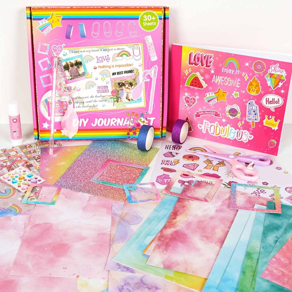 Набор для самостоятельного создания журнала - Набор для самостоятельного создания журнала включает в себя все необходимое для создания красивого журнала.. Этот набор станет идеальным спутником для молодых девушек, которые любят вести дневник и заниматься скрапбукингом.. Этот набор предлагает множество возможностей. От маленьких девочек, записывающих мысли и рисунки, до подростков, стремящихся к личностному росту, — это восхитительный способ хранить воспоминания.