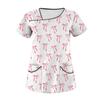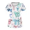 Женская мода с бантом и принтом, короткий рукав, рабочая одежда с двойными карманами