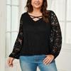 Женская мода однотонный крест V-образный вырез с длинными рукавами кружевной универсальный топ больших размеров