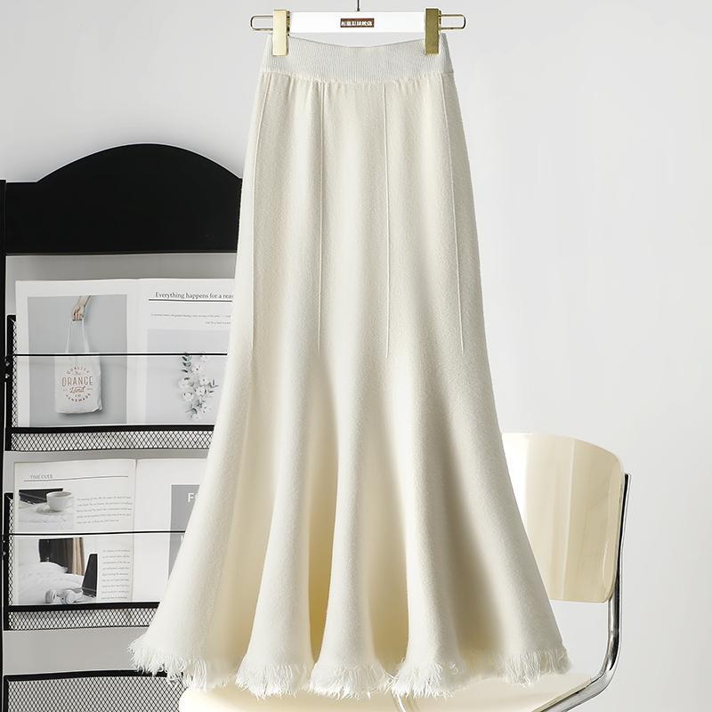 Qooth осень-зима вязаная элегантная юбка-труба для женщин с высокой талией и кисточками средней длины QT2507 — купить товар онлайн с бесплатной доставкой до всему миру!