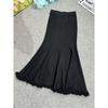 Qooth осень-зима вязаная элегантная юбка-труба для женщин с высокой талией и кисточками средней длины QT2507