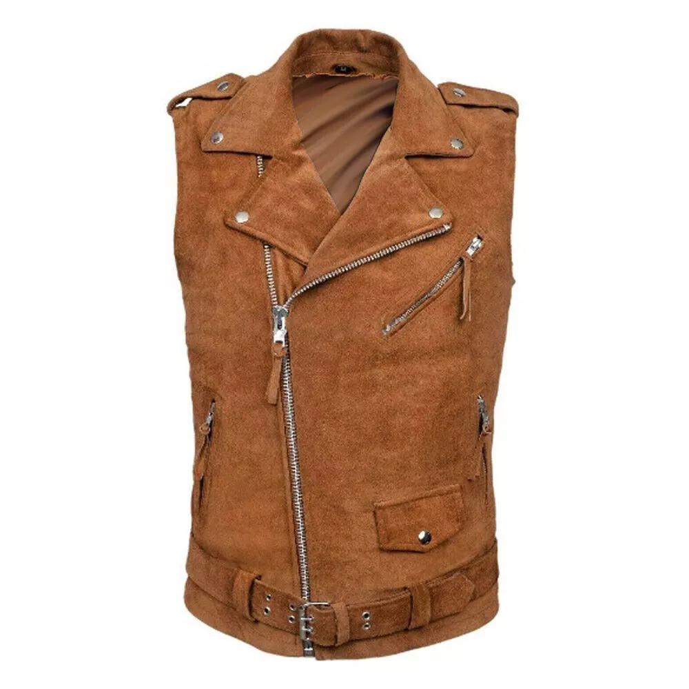 Коричневый замшевый мужской жилет из натуральной овчины, стильный жилет в стиле вестерн, пальто, куртка