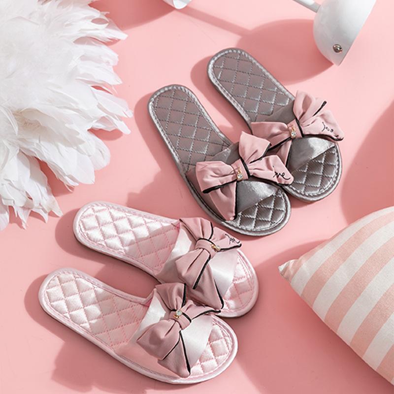 Элегантные мохнатые тапочки с атласным бантом и открытым носком, летние домашние тапочки, женские простые четырехсезонные дышащие сандалии, домашние туфли, розовые тапочки